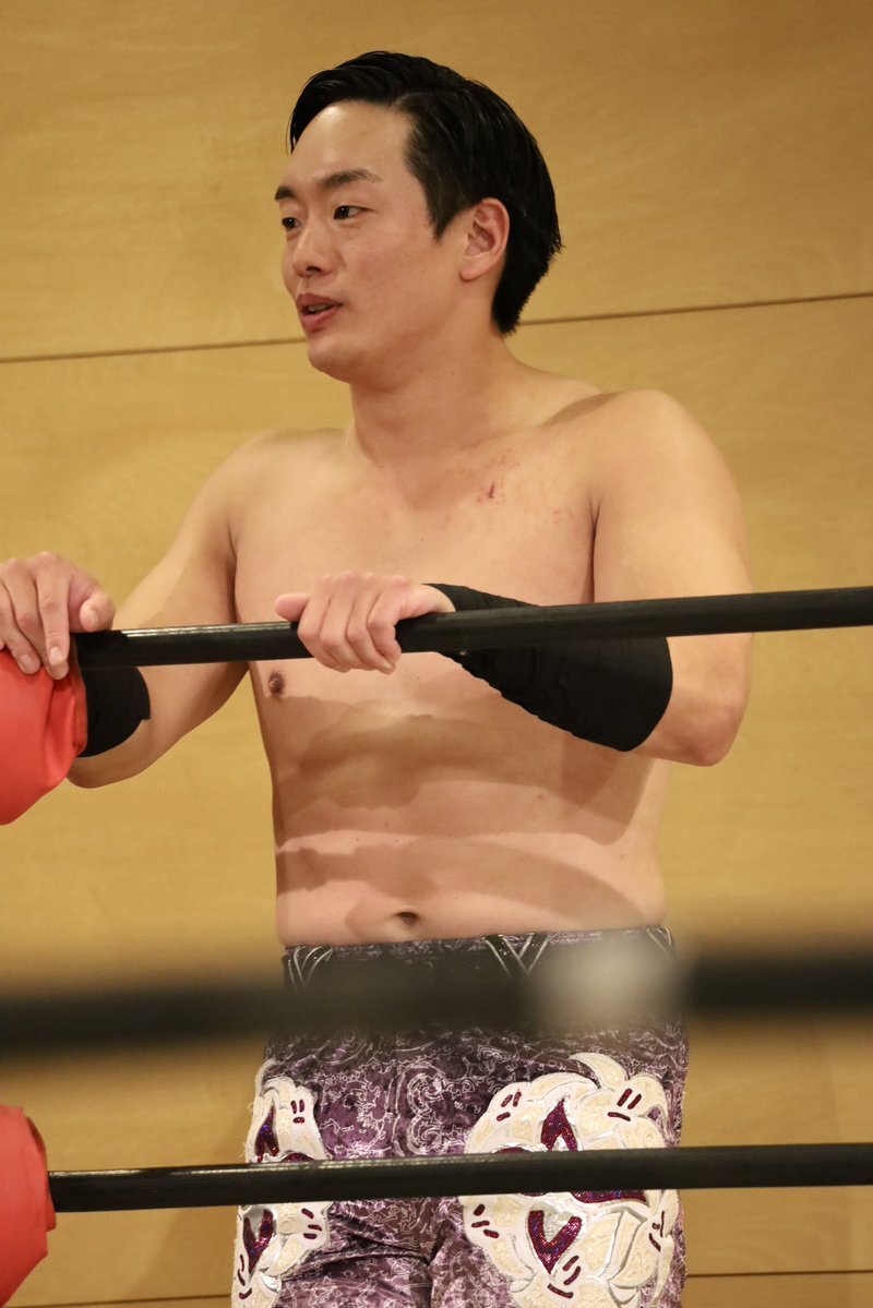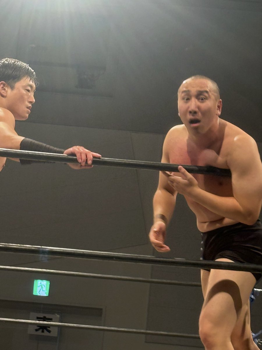 2025.10.25 G PROWRESTLING Ver.97 チョップが凄すぎて… 強烈過ぎたのか痛過ぎたのか ビックリな表情になった三宅さん😳 #GLEAT #T_Hawk #三宅豪 pic.x.com/VtQmnt0snI
