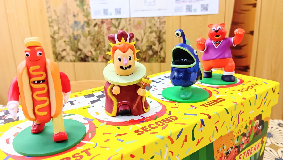 新たに、 『HOT STREAK / ホットストリーク』 で遊べるようになりました✨ ドデカくて、珍妙なマスコットが目を引きます🐻🌭👸🐟️💕 ゲームの中身はド珍 (ドッタバッタ珍道中) なレースゲームです😂🏁✨ #大阪 #門真市 #taiari今日の一枚 #京阪 古川橋駅 徒歩5分 #ボードゲーム #ボドゲ 会