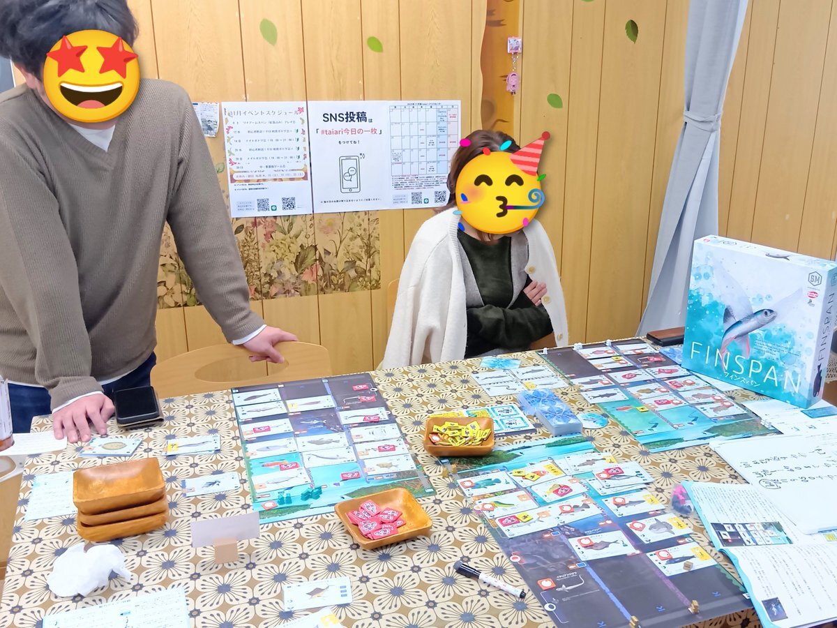 『ワイアームスパン』🐲の あとは、続けざまに 『フィンスパン』🐠も プレイされました! 連続でプレイすると プレイ感の違いも楽しめますね✨ こちらも楽しそうでした💕😊 ※ お客様持込 です。 #大阪 #門真市 #taiari今日の一枚 #京阪 古川橋駅 徒歩5分 #ボードゲーム #ボドゲpic.x.com/6HokTYWlJI