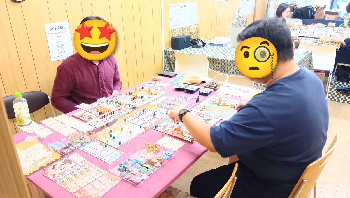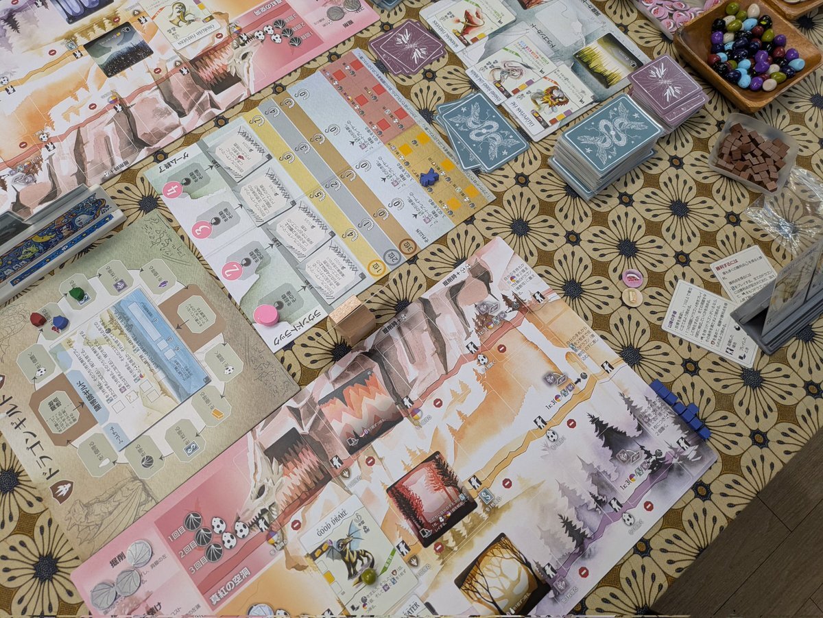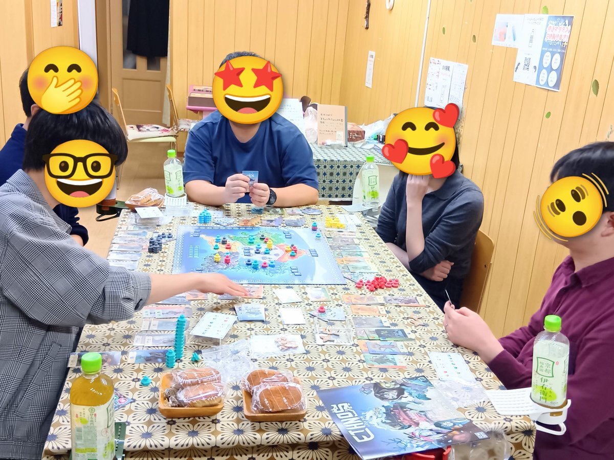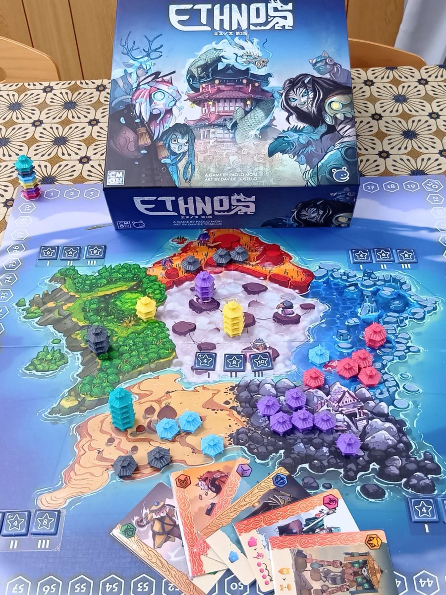 『スイーツランド』の後は、 参加メンバーで様々なゲームを楽しみました✨ 写真は『エスノス』✨ 5人でプレイしたので、 エリアマジョリティは苛烈に😂 #大阪 #門真市 #taiari今日の一枚 #京阪 古川橋駅 徒歩5分 #ボードゲーム #ボドゲ#ボードゲーム好きと繋がりたい pic.x.com/wJwreeXUxf