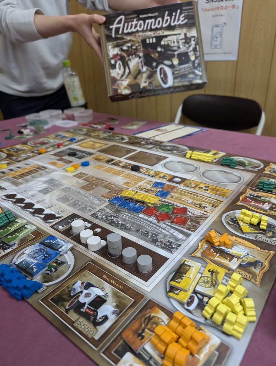 11/8 門真taiariでオートモービル会に参加 5人ベストのゲームということで、13時から5人で集まりプレイ開始 バチバチ感があって脳が痺れた(笑) インスト込みで約4時間だけど面白かった☺️ #taiari今日の一枚 pic.x.com/9OgBATxuXU