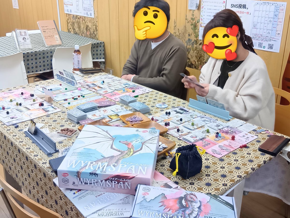 本日は、 相席で『ワイアームスパン(拡張込)』が遊ばれました✨ 拡張が入るとリプレイ性も上がり、 遊び甲斐ありそう🔥 とても盛り上がっている様子でした💕😊 ※ お客様持込 です。 #大阪 #門真市 #taiari今日の一枚 #京阪 古川橋駅 徒歩5分 #ボードゲーム #ボドゲpic.x.com/uZOnyD0ZFX