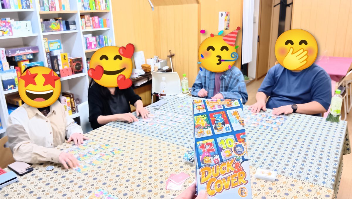マダミスの後は、ボードゲームも楽しんで頂きました! こちらも 料金に含まれています! とってもおトクですよ💕 写真は、 『ダック&カバー』🪿 『オラパマイン』📡 『うんちしたのだぁれ?』💩 #大阪 #門真市 #taiari今日の一枚 #京阪 古川橋駅 徒歩5分 #ボードゲーム #ボドゲpic.x.com/hbZN63WPwv