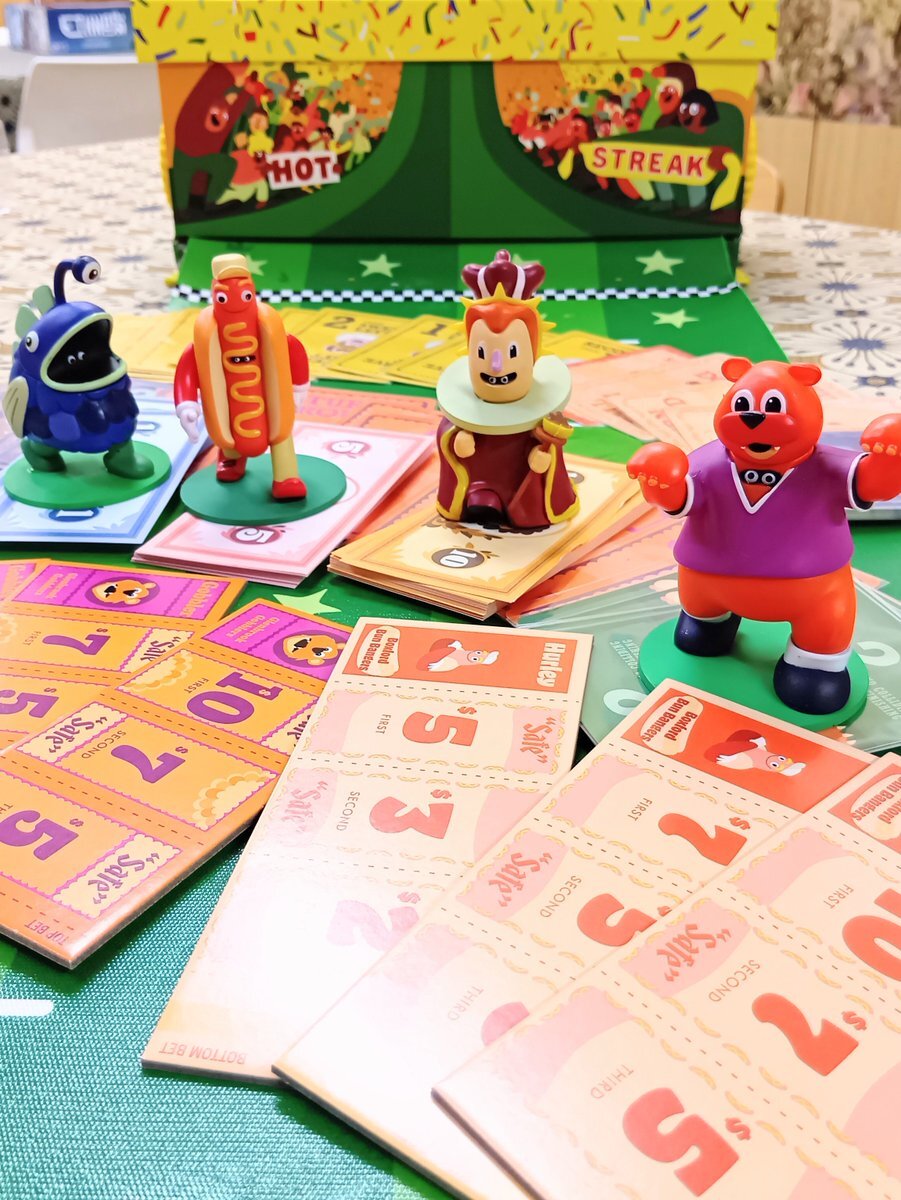 新たに、 『HOT STREAK / ホットストリーク』 で遊べるようになりました✨ ドデカくて、珍妙なマスコットが目を引きます🐻🌭👸🐟️💕 ゲームの中身はド珍 (ドッタバッタ珍道中) なレースゲームです😂🏁✨ #大阪 #門真市 #taiari今日の一枚 #京阪 古川橋駅 徒歩5分 #ボードゲーム #ボドゲpic.x.com/8bJ28i89jN