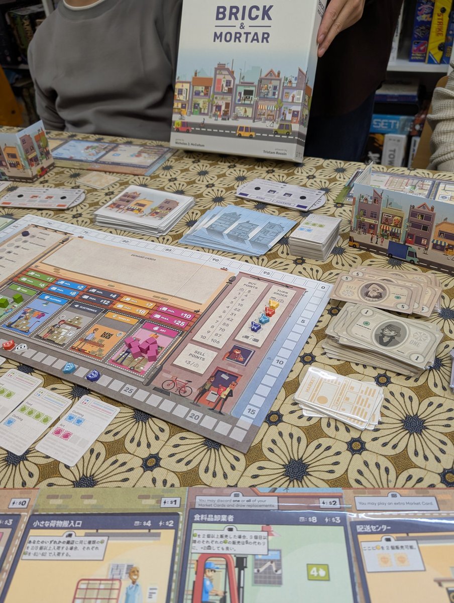 11/1 門真taiariでブリックアンドモルタル、スカイライズをプレイ どちらも競りの要素が大きいゲームで、上級者3人とのプレイはかなり厳しかった😅 個人的にはブリックアンドモルタルの方が好みで、もう一度やりたいと思った どちらも4/4位だったけど、善戦はしたと思いたい(笑) #taiari今日の一枚 pic.x.com/uGzZBvprsy