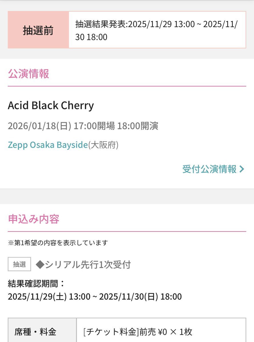 あぁー当落までドキドキする😭 神様、zeepに連れてって下さい🙏✨ #TeamABC #TeamABCと繋がりたい #AcidBlackCherry #AcidBlackCherryFILMLIVEtour2025 #yasu pic.x.com/tEyiyXXvvE