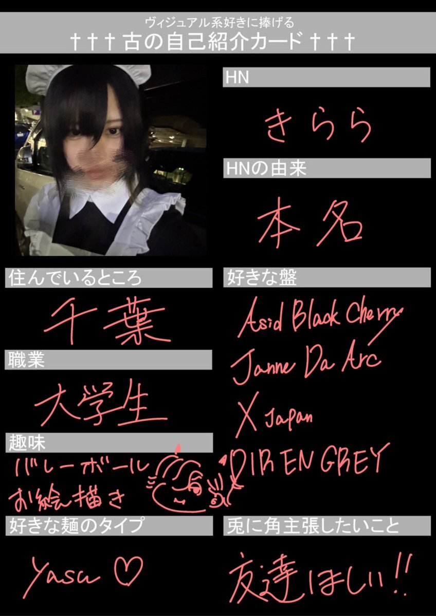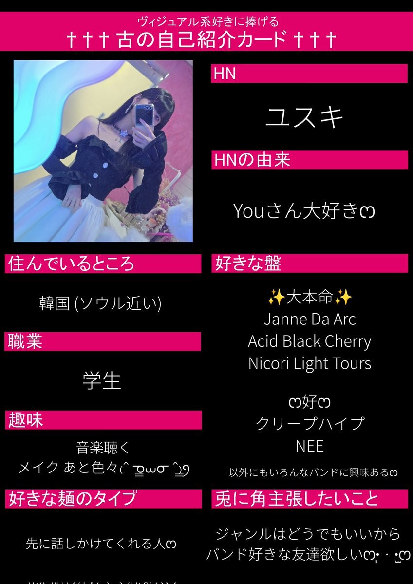 ド新規のガキですが仲良くしてください😸💞 同担◎他担◎別盤◎ #Jannerさんと繋がりたい #TeamABCと繋がりたい #V系好きな人と繋がりたい #古の自己紹介カード #バンギャさんと繋がりたい #バンギャさんギャ男さんと繋がりたい pic.x.com/Jv3Y0Kpzc1