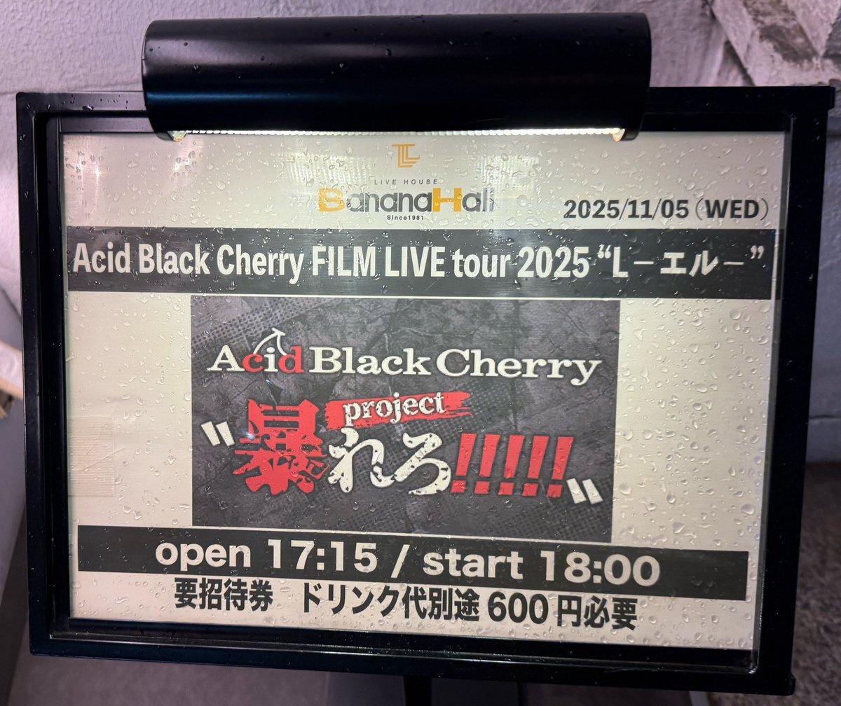 昨日に続いて、今日は名古屋に参戦‼️ 明日はないから、頭がぶっ飛ぶくらい暴れるぞぉぉ🙋🔥 Acid Black Cherry FILM LIVE tour 2025 “L-エル-” 11月6日(木) E.L.L (愛知) #AcidBlackCherry #AcidBlackCherryFILMLIVEtour2025 #TeamABC #TeamABCと繋がりたい pic.x.com/gxyLbYbI6X