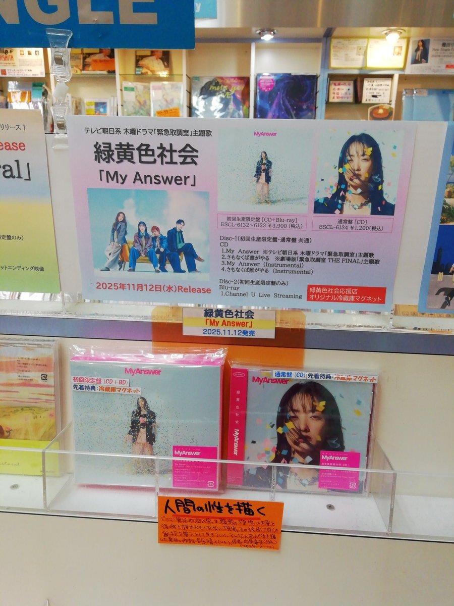 こんにちは。 本日も開店しております💿 #アンジュルム、#Bz、#THEYELLOWMONKEY、#TOMOO、#緑黄色社会、#Aimer、#timelesz、など今週の新譜絶賛発売中です💿✨ ご来店お待ちしております♪ pic.x.com/0uO5t0jwzQ