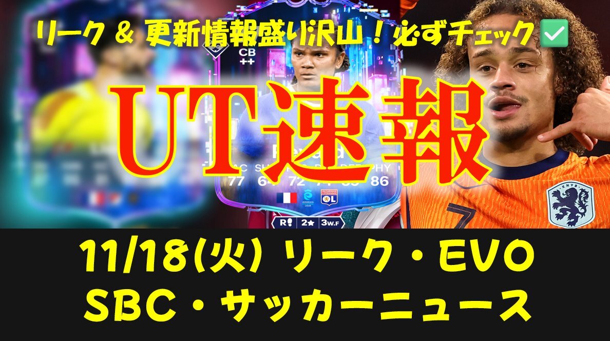 【FC26 UT速報】11/18 (火) 更新情報 :リーク情報/FC PRO LIVE/ブラフラ新イベ/目標報酬解説/TOTW10予想排出選手... youtu.be/Nxvnkoa8P0g?si… @YouTubeより #FC26 #EAFC26 #easports #leak #sbc #totw10 #BlackFriday 毎日ご視聴ありがとうございます! 本日のUT速報投稿しました✅ pic.x.com/ILG5hJBeC9