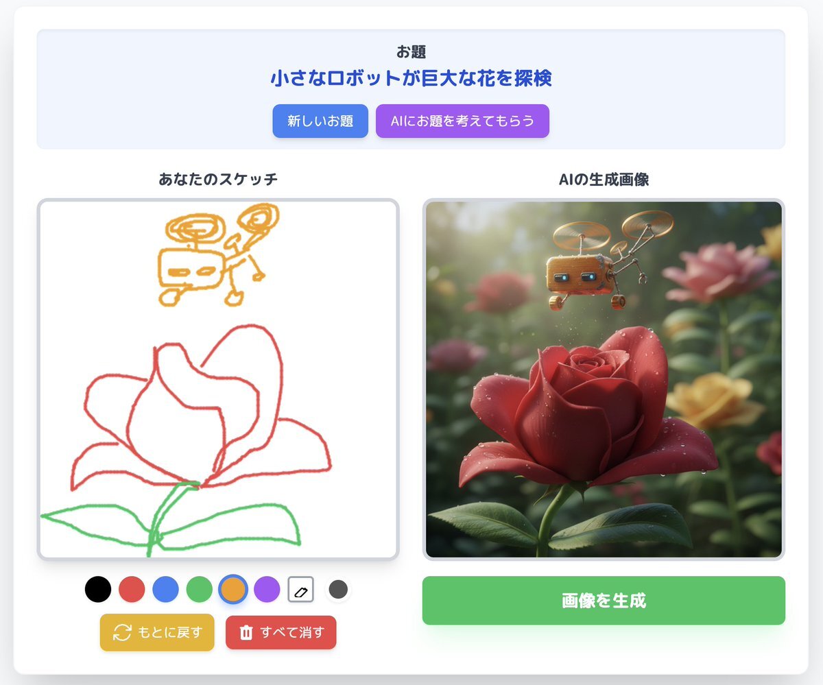 今日の #CoderDojo 末広町も #Gemini#VibeCoding ✨ 手描きイラストをリアル写真に変換するAIアプリをさっと作りました🎨 g.co/gemini/share/2… 前回の大プレゼン大会で勢いがついたのか、発表者が増え過ぎて時間オーバーしちゃいましたが、それだけ挑戦する人が増えている証拠ですね pic.x.com/5Cgo6816iZ