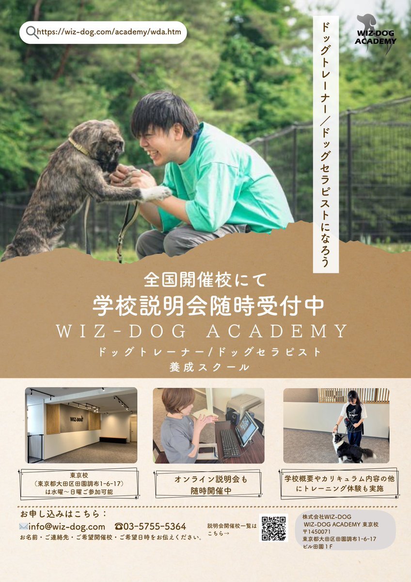 ドッグトレーナー/ドッグセラピスト養成学校のWIZ-DOG ACADEMYでは随時受講生募集中!!学校説明会も全国にて開催中です🙋‍♀️✨ #wizdogacademy #wizdog #ドッグトレーナー #ドッグセラピスト #しつけ教室 #好きを仕事に #働きながら学べる #副業 pic.x.com/PFvXnQlZaY
