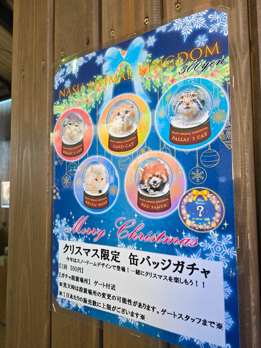 今日の🍆ランチ~😋 那須さんもX’mas仕様🎄.* X’mas缶バッジもコンプ✨ どれも可愛い🥹 📷:2025.11.16 #那須どうぶつ王国 #カフェマヌルヌマ #クリスマス #Xmas #nasuanimalkingdom pic.x.com/v5C8nGUb71