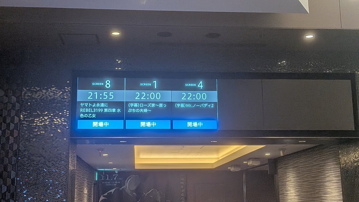 今夜は #TOHOシネマズ #ららぽーと磐田 で『#ヤマトよ永遠に #REBEL3199 第四章 水色の乙女(サーシャ)』に乗艦。 録音済みの館内アナウンスは『ヤマトよとわに レベルさんいちきゅうきゅう サーシャ』でした😅 #宇宙戦艦ヤマト #宇宙戦艦ヤマト3199 #yamato3199 #地元の映画館でヤマトを観よう pic.x.com/3mi3EHGLwi
