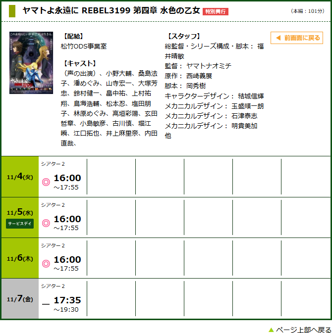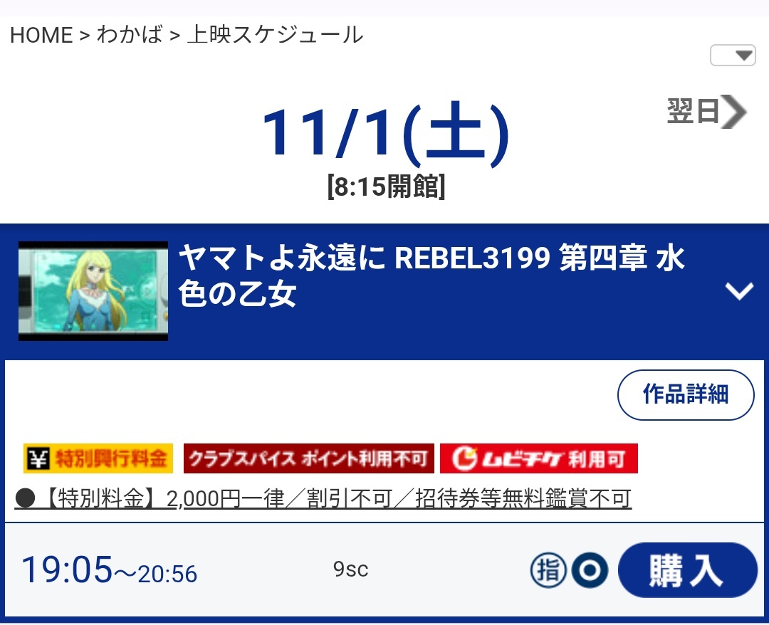 『ヤマトよ永遠に REBEL3199』 第四章 水色の乙女 新宿ピカデリーは、第5週の延長上映があり! ただし、11/12(水)は上映が無いようです。 #宇宙戦艦ヤマト #yamato3199 #新宿ピカデリー smt-cinema.com/site/shinjuku/ pic.x.com/SC8iXXH6mc