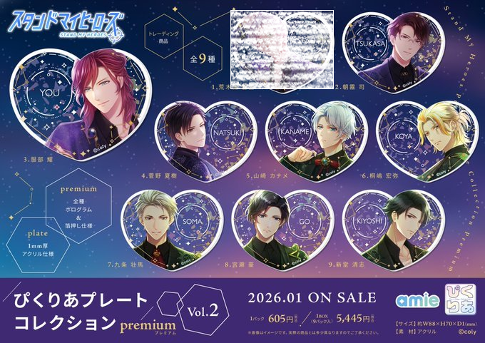 譲渡 #yl取引 スタマイ ぴくりあ ぴくりあプレートコレクション premium Vol.2 【譲】 ★ 服部 カナメ 宮瀬  ☆ 朝霧 菅野 桐嶋 九条 新堂 【求】 定価+送料 ・平日都内手渡しも可 ・誠に恐れながら、★は☆を同数お迎えください ・7枠埋まり次第、予約予定 お気軽にお声がけください pic.x.com/wSIyFZ0oRs