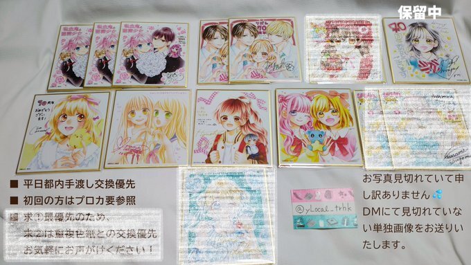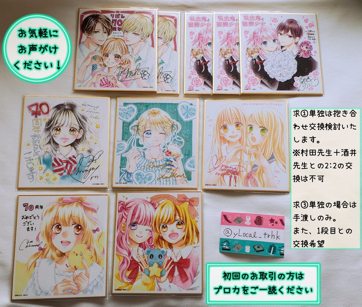 交換 #yl取引 りぼん展 ミニ色紙 色紙コレクション 【譲】 香純裕子先生 朝香のりこ先生 村田真優先生 酒井まゆ先生 春田なな先生 雪丸もえ先生 柚原瑞香先生 【求①】 槙ようこ先生 【求②】 種村有菜先生 【求③】 黒崎みのり先生 ・平日都内手渡し>郵送 ・詳細は画像参照 pic.x.com/rOooXiALBy