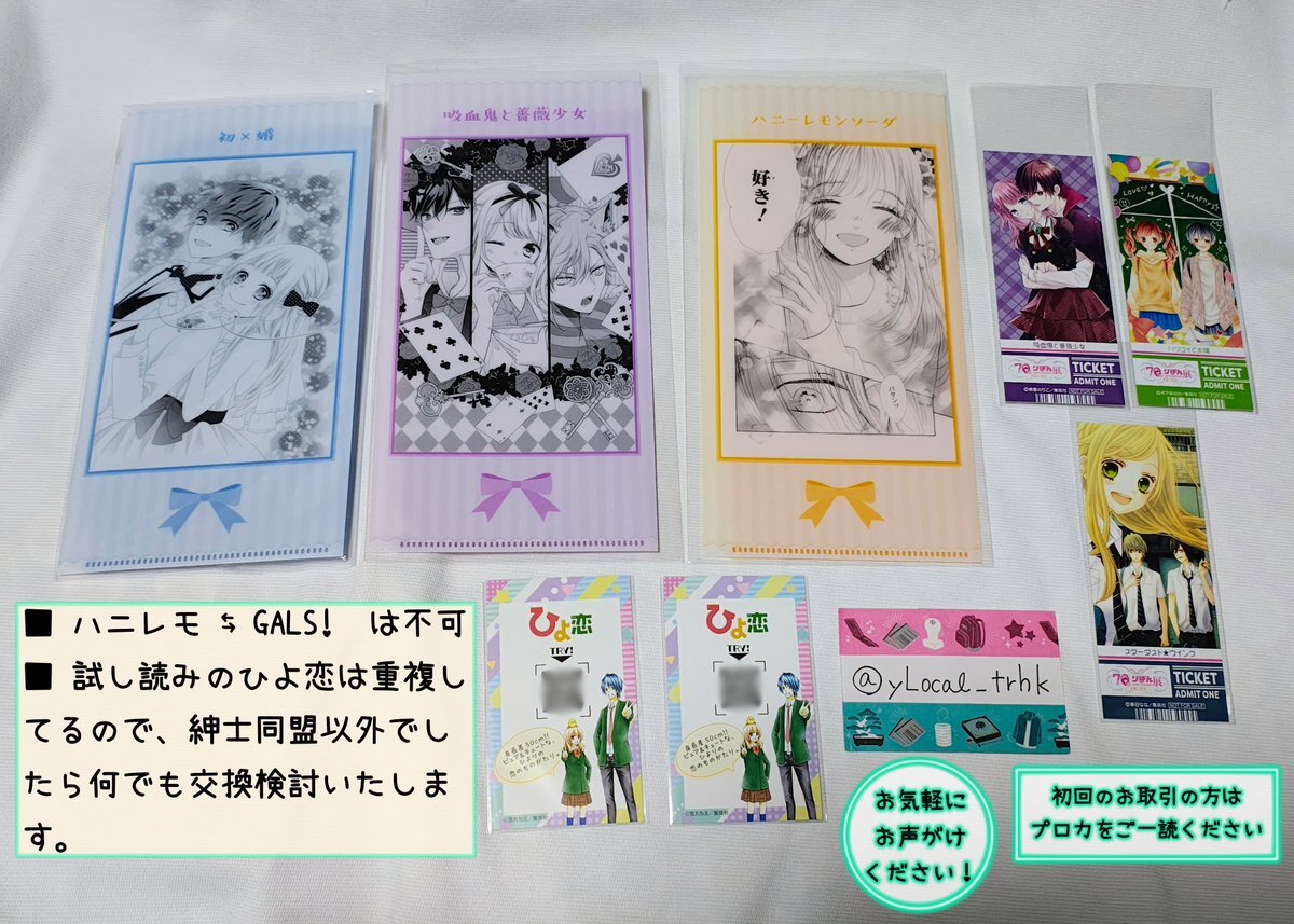 交換 #yl取引 りぼん展 購入特典 入場特典 QR チケットクリアファイル 試し読み 【譲】 初×婚 吸血鬼と薔薇少女 ハニーレモンソーダ ハツコイと太陽 スターダスト★ウインク ひよ恋 【求】 神風怪盗ジャンヌ 愛してるぜベイべ★★ 紳士同盟† >> GALS! ※取引白紙分含む 平日都内手渡し>郵送 pic.x.com/xGInPfbWfM