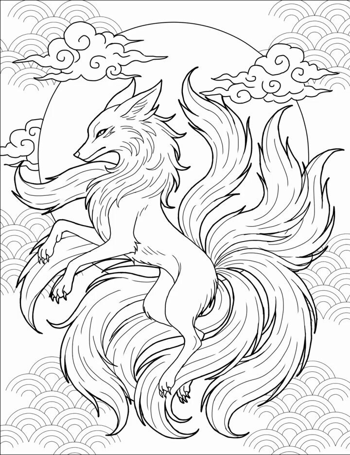 九尾さんの線画タイムラプスできました🦊✨ 尾が “わしゃ〜っ” と広がるところが好きなので、ぜひ見てもらえたら嬉しいです!🌙 #すきのかけら #SukiNoKakera #九尾の狐 #九尾狐 #和風塗り絵 #和風イラスト #妖怪塗り絵 #大人の塗り絵 #japanesestyle #YokaiColoring #ninetails #coloringpage