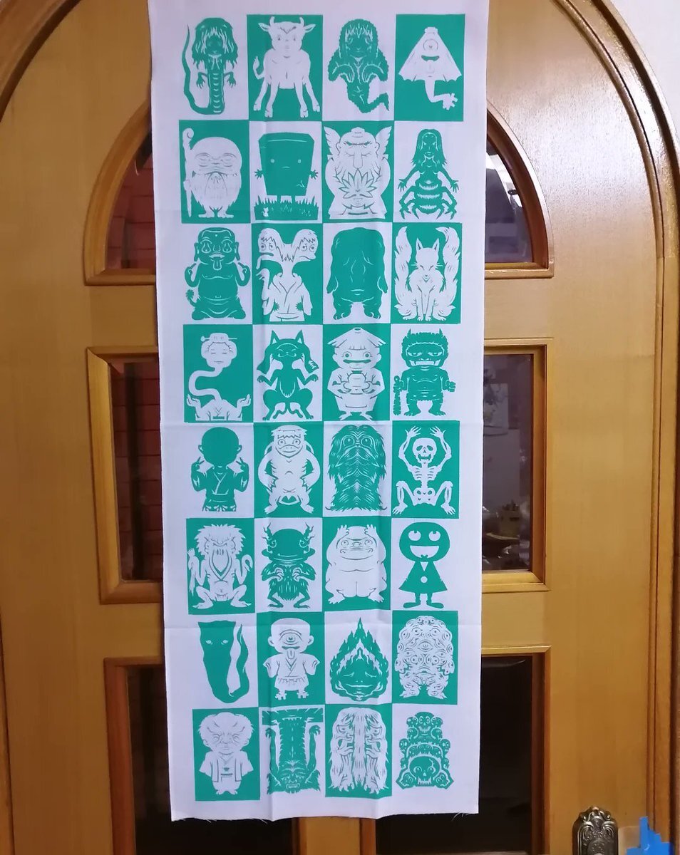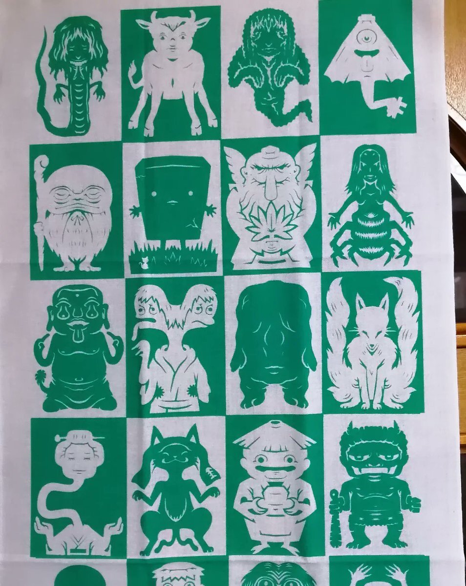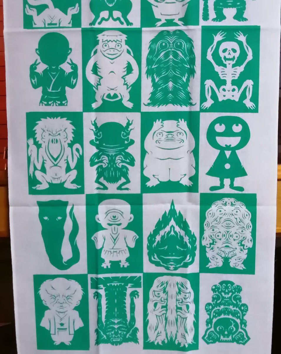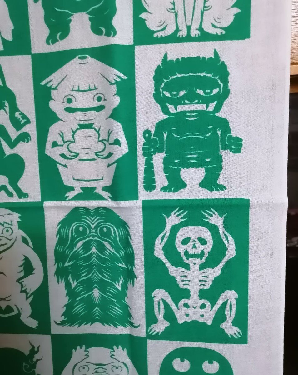 妖怪切り絵 #手ぬぐい の新色作った。届いた! 明るいグリーンでかわいいぜ! #田中良平 #ryoheitanaka #妖怪 #yokai #切り絵 #papercut pic.x.com/CotawIvBeU