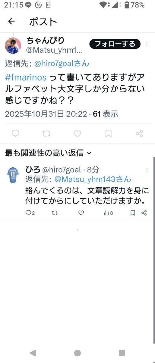 シーズン中にも関わらず、アホなマリサポが湧いてくるし、ホントにもう迷惑の部類。 #yokonamafc #横浜FC x.com/take05fromm/st…