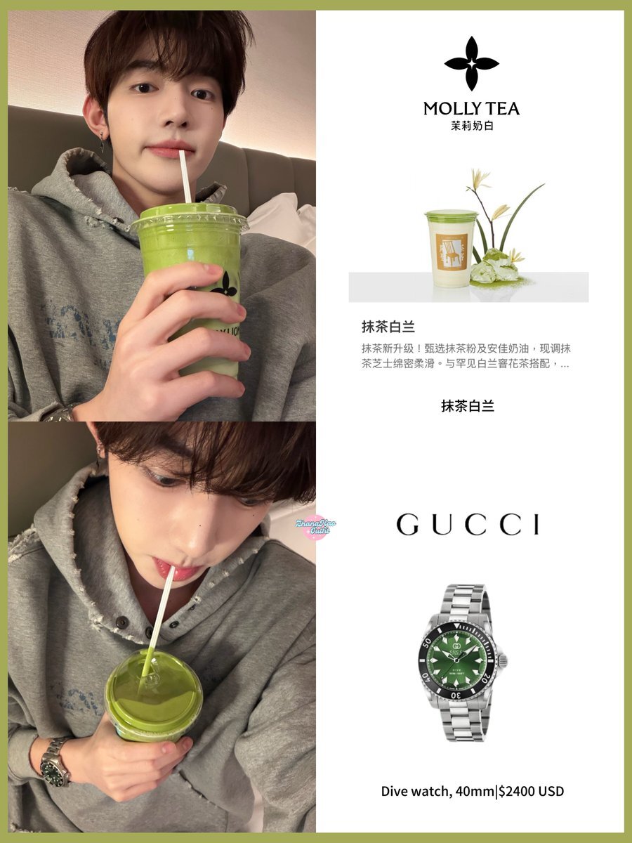 251121 Plus Chat 📌MOLLY TEA 茉莉奶白 🥤|White Champaca Matcha Milk Tea 抹茶白兰 📌GUCCI ⌚|Dive watch, 40mm|$2400 USD #ZHANGHAO #장하오 #章昊 #ジャンハオ #ZEROBASEONE #ZB1 #제로베이스원 pic.x.com/KFznznbeKF