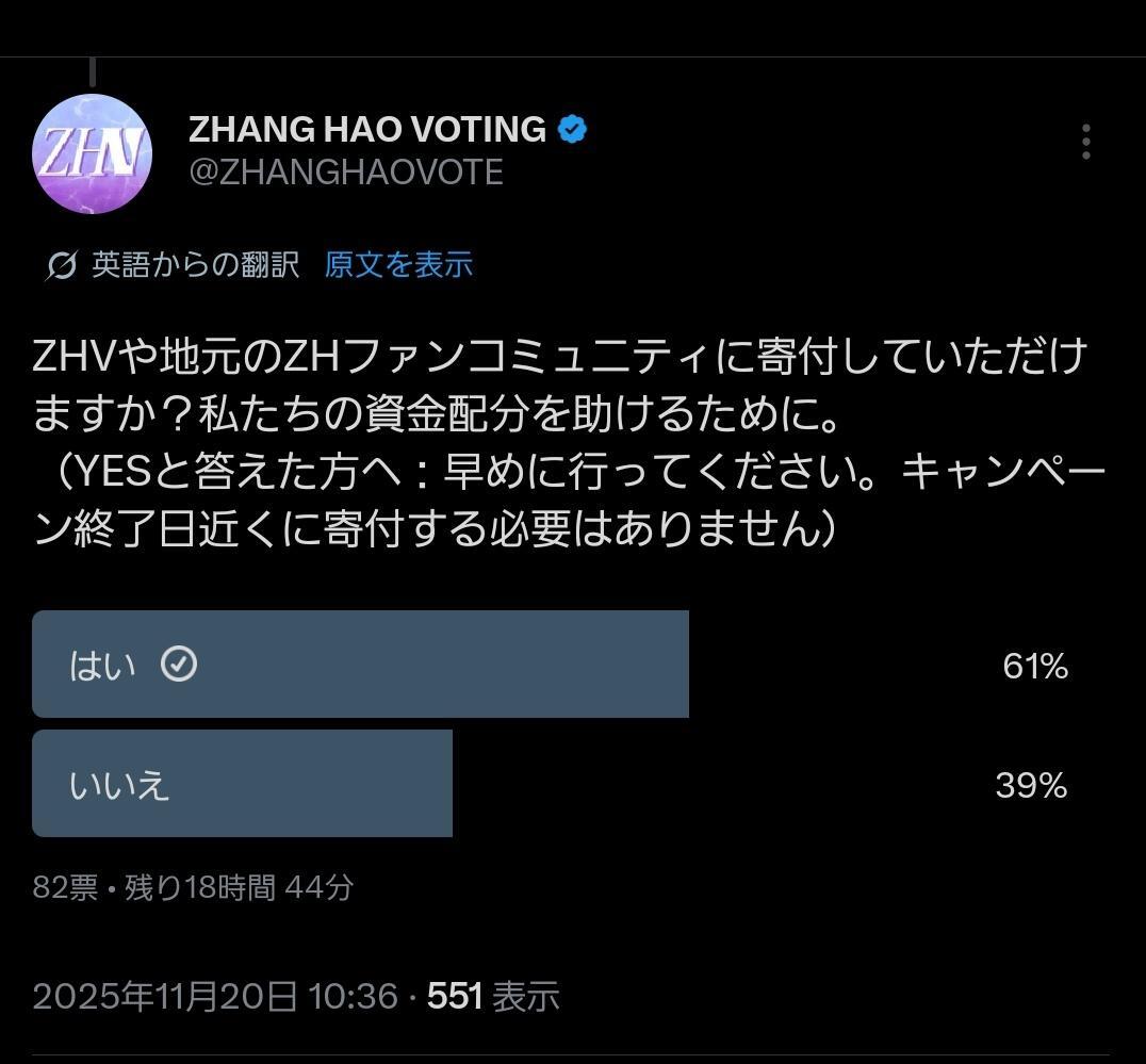 YES!!!と回答したハオペンさんは、すぐに寄付にご協力ください *️⃣ DONATE 🔗ko-fi.com/zhanghaovoting 資金がある程度集まらないと今後の戦略にも影響すると思われます。 #ZHANGHAO #장하오 #ジャンハオ #章昊 pic.x.com/Hs8mILYvxG x.com/ZHANGHAOVOTE/s…