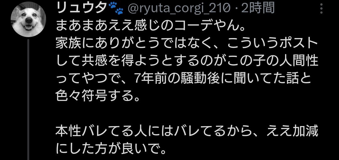 これみよがしに家族にありがとうってポストする方があざといじゃん😅 本当に仲がいい家族はその時にありがとうって言ってるし、家族なら助け合って当然で過ごしてきてるしさ… おじさんがチョロいっていうのはこういう所なんだろうね… x.com/00157/status/1…