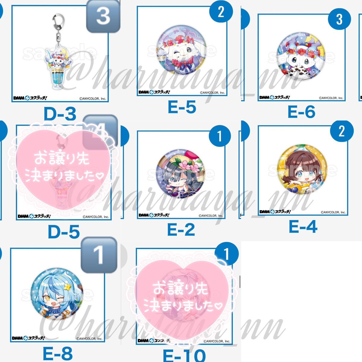 【譲渡】にじさんじ あやかき いずれ菖蒲か杜若 DMMスクラッチ Summer Splash くじ 缶バッジ アクリルキーホルダー 譲:画像 求:定価+送料185円 交換求めてません ・1段目D賞は2.3段目より倍数、1段目E賞は2.3段目より同数引取り必須 ・2.3段目無くなり次第、別くじ下位賞抱き合わせに変更します x.com/harutaya_nn/st…