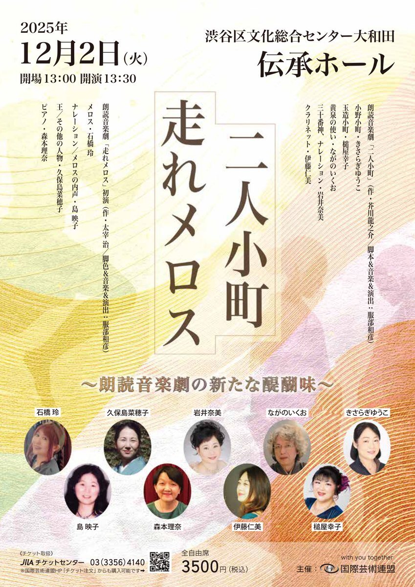 日程が近づいて参りました… 12/2(火)13:30~ 渋谷伝承ホールにて、朗読音楽劇場「走れメロス」の初演に、メロス役にて出演いたします。 石橋にご予約くださいましたら、ほんのお気持ちですがお値引価格にてチケットをご用意いたします。 興味をお持ちいただけましたら、リプライまたはDMください❣️ pic.x.com/wP1F0huqQ9
