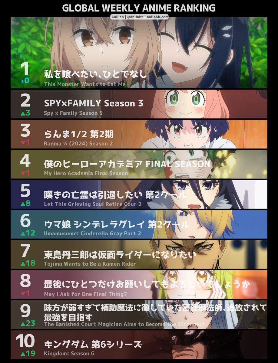 ヒロアカ ガチアクタ さいひと わたたべ ワンパンマン いもウザ らんま2期 嘆きの亡霊2期 補助魔法 悪食令嬢 ステつよ 計11作品が 10位以内どころか20位以内にすら 入らないのはどう考えても 逆張りだし過小評価だしセンス無いわ ハリカルボケカス💢💢💢 理解力が足りてない老/害は失せろや💢💢💢💢 pic.x.com/AJ1AUw7DRy