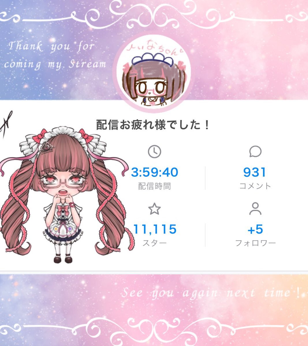 𓊆初配信week🔰4日目 10万スター耐久𓊇 30分で達成させて頂きありがとーなひめ♔.゚ ほぼ雑談おしゃべりモンスターひぃなは とっても楽しいお時間を過ごさせて頂きました💗 夜中の事件も面白かったし、楽しかったよーん 明日はメイド練習枠𖠚ᐝ配ポスでネップリ特典 あり!ご入国お待ちしております💗 pic.x.com/L7J4SlLRHW
