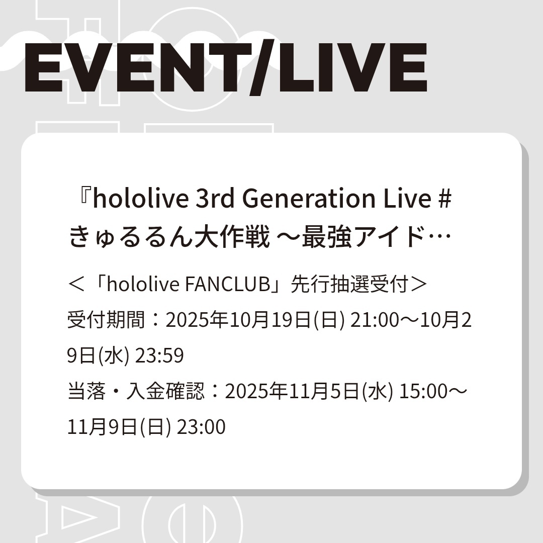 👯🔥3期生ライブ 開催決定!⚔️🏴☠️ hololive 3rd Generation Live #きゅるるん大作戦 〜最強アイドル、推すしかないでしょ〜 2026/1/17(土)、1/18(日) Kアリーナ横浜 2DAYS開催決定🎉 公式ハッシュタグ:#きゅるるん大作戦 🔽プレスリリース prtimes.jp/main/html/rd/p… 🔽特設サイトはこちら pic.x.com/xJCHAnssj3