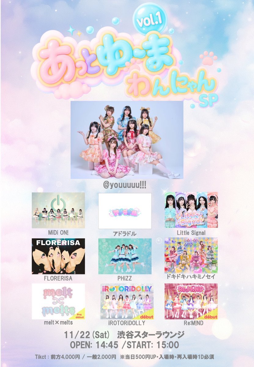 🔔Re:M!NDのLive Reminder🔔 11.22(土) 『 あっとゆ〜ま わんにゃんSP 』 @ スターラウンジ 🎫 t-dv.com/innotime1 発売:11/9(日) 21:00~ 🎙️ 15:35-15:50 📸 16:05-17:05 C -入場特典- 次回使える集合チェキor写メ券 #remind
