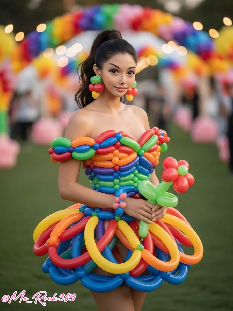 #AIバルーンフェス 瑠華さん 参加します ----- バルーンフェスに来たら バルーンアートの人が ワンピを作ってくださいました (※着てきた服やインナーは、この後スタッフがおいしくいただきました) pic.x.com/PuL3k7HQVl x.com/rukachi_hime01…