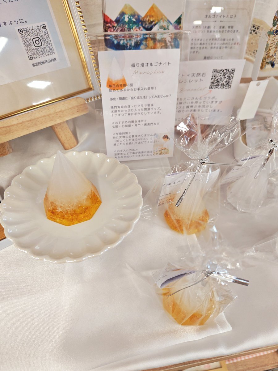 💎#ハンドメイド💎 BOX1⃣3⃣番 #オルゴナイト 様 新作『盛り塩オルゴナイト』 納品していただきました🤗✨ ディスプレイも 変えてくださいました😀🎵 #TSUTAYA #ハンドメイド作家 #ハンドメイド好きさんと繋がりたい #アクセサリー #パワーストーン pic.x.com/DfPJM3yZMc