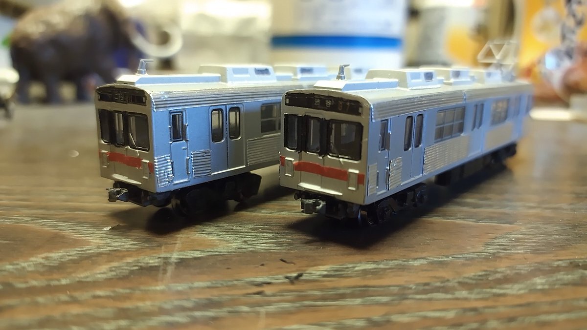 帰宅! ノス鉄の新作、色付いた物見てきましたが良かです。 琴電の車両は茶と赤では車番のフォントが変えてあるのが印象的。 そして富井電鉄のデニ800がなかなか良い赤色。 デハ100非貫通は中央の窓がちょっと大きいのが、いかにも小規模私鉄と言う感じ。 このクオリティでくるなら、ヨシ! pic.x.com/P6cd5CThn6