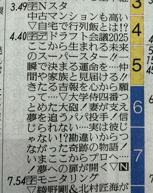 #プロ野球ドラフト会議 きっとね、中居くんと仕事した方々は中居くんのこと信じてくれてるんだって確信できる。 新聞のラテ欄はテレビ局と新聞社が連携して決めてるみたい。 ほんと感謝しかない✨😭 中居くん、ラテ欄気付いてるといいなぁ😌 #この瞬間きっと夢じゃない #中居正広