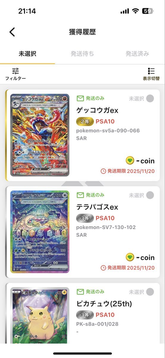 #トレカセンター当選報告 たまたまYouTubeで見かけて 興味本意で初めてみました🤩 新規限定1回引ける損のしない分で ブラックボルト当選しました🌟 余りのポイントで100%以上還元ガチャを引いたら 2等ゲッコウガ、3等ピカチュウ、テラパゴス当たり過ぎてビックリです🎊㊗️ オリパのご利用は計画的に🤣 pic.x.com/hambU7MCdR