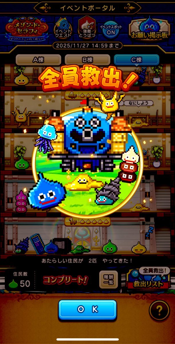絆アップ⤵️大変… 全員救出!⤴️´Д`)ヤット‥ 中々にボリュームのあるイベントでやりがいはある! #ドラクエウォーク #ご利用は計画的に pic.x.com/CxbuMZDZiu