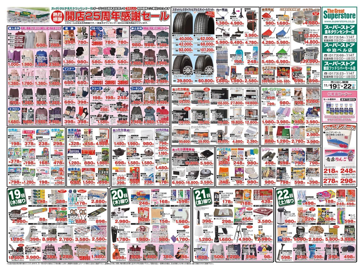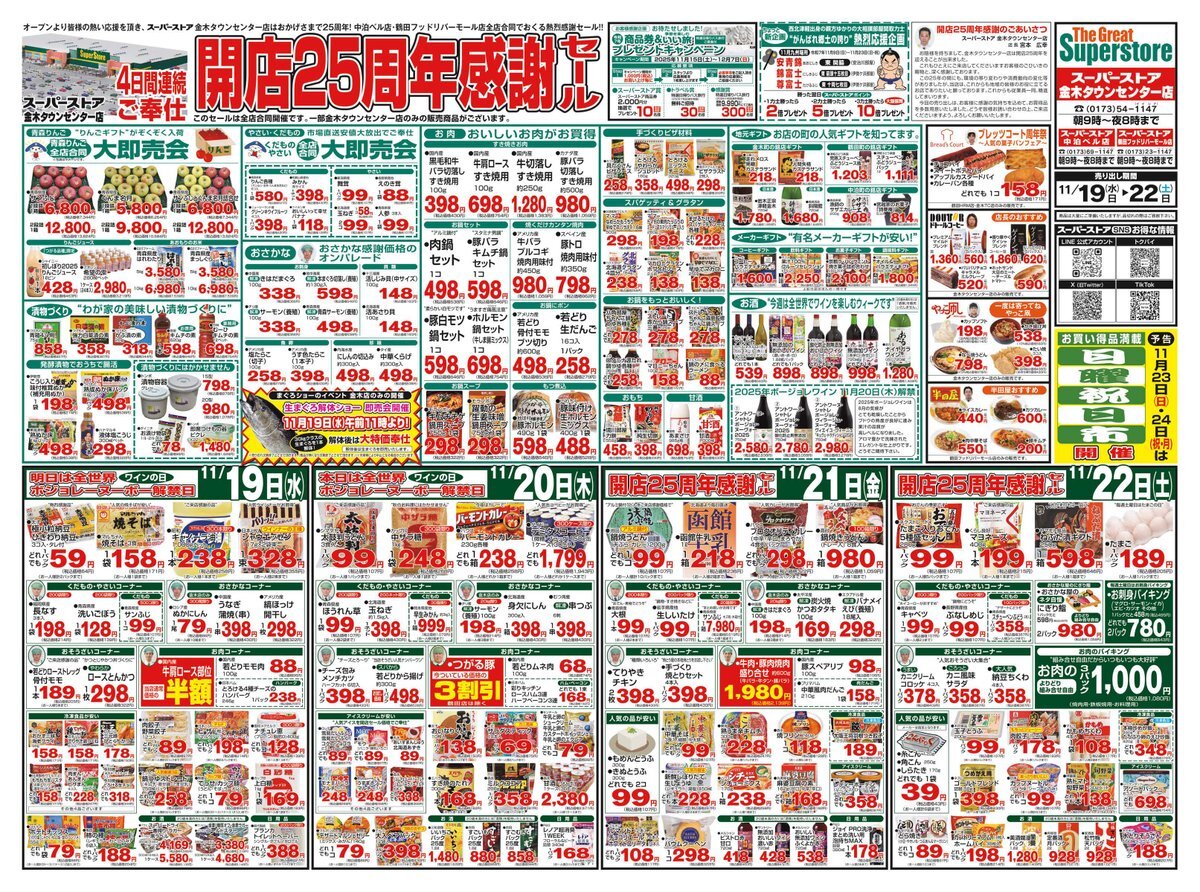スーパーストアよりご案内😊 明日11月19日(水)より、スーパーストア金木タウンセンター店開店25周年感謝セール開催いたします✨ 25周年の感謝の気持ちを込めて、お買得品を多数ご用意いたしますので、どうぞご利用くださいませ🙇🙇🙇🙇🙇🙇🙇 pic.x.com/9UZoBUhDJy