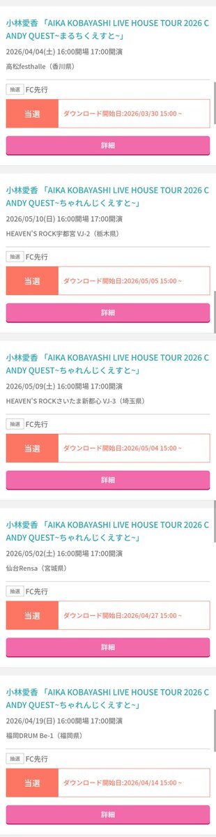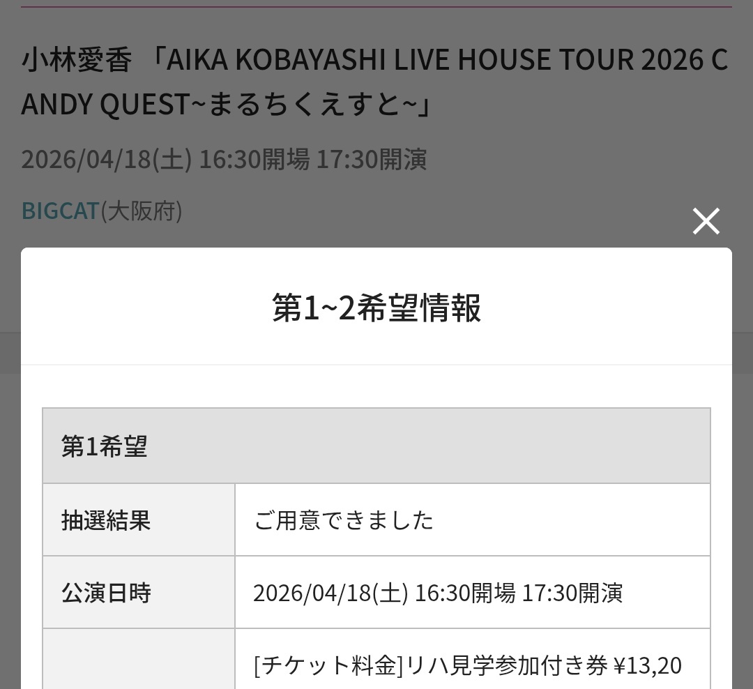 小林愛香さんらいぶつあー きゃんでぃーくえすと チケットご用意していただきました! 全通します! 大阪はリハ見学も当たった🙌🙌🙌✨ 沖縄も当たりますように🙏 pic.x.com/iLePmA52J3