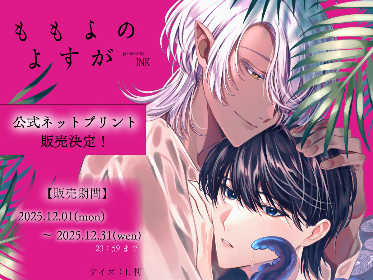 _人人人人人人人人人人_ >📢公式ネップリ発売 <  ̄Y^Y^ Y^Y^Y^Y^Y^Y^ ̄ #INK 先生の 『#ももよのよすが』が、 公式ネットプリントにて全3⃣種の形態で販売!! 美麗イラストがお手元に🫶 販売期間 12.01(mon)10:00~12.31(wed)23:59