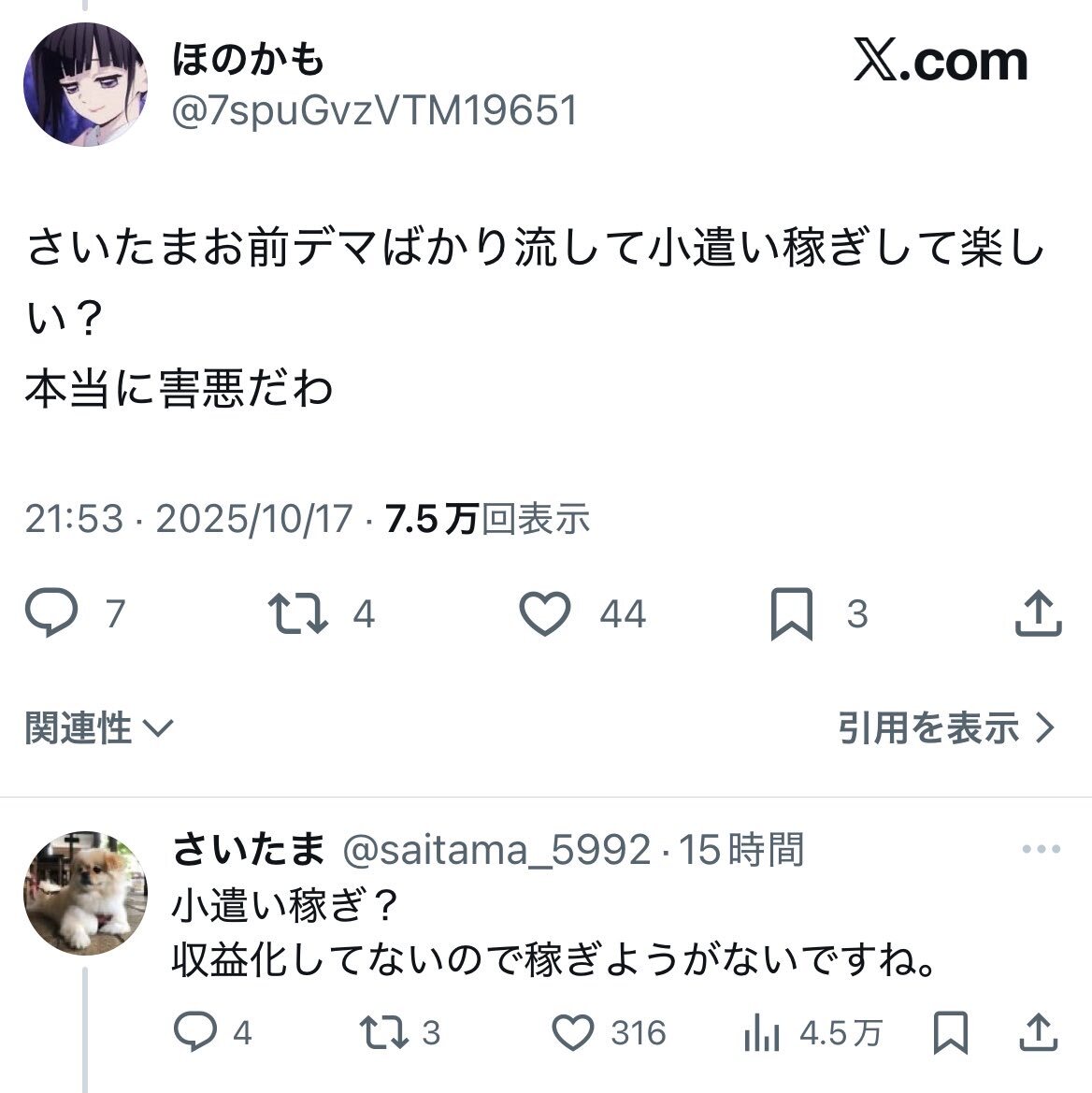 れいわ信者さん 我らがさいたまさんに絡むもド級に阿呆なのが即バレる pic.x.com/ZaKHTvebsq