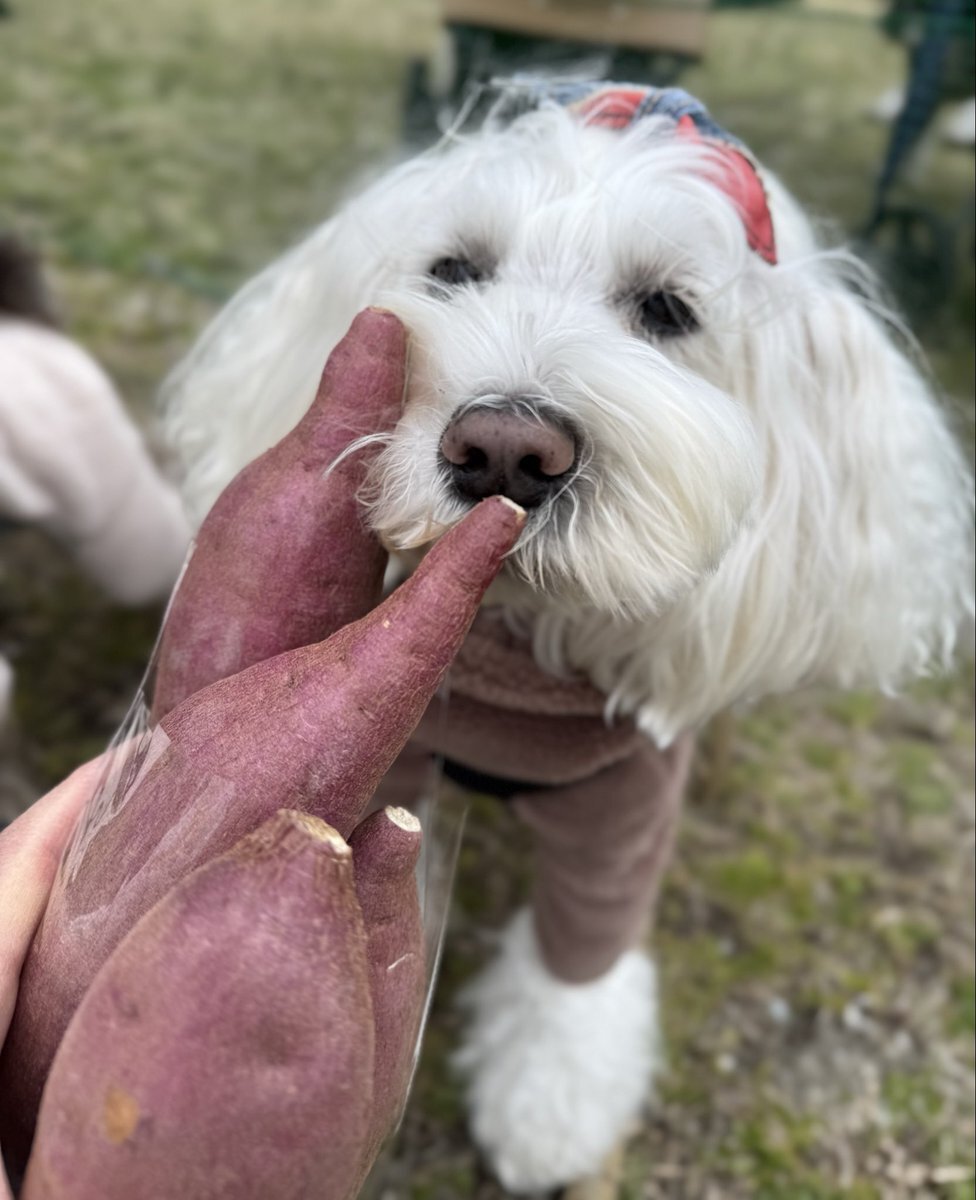 返信先:@cmama41566238ちゃまちゃんも、さつまいも🍠好きだったんですね😋 「さつまいもの日」🍠明日食べさせますね🐶