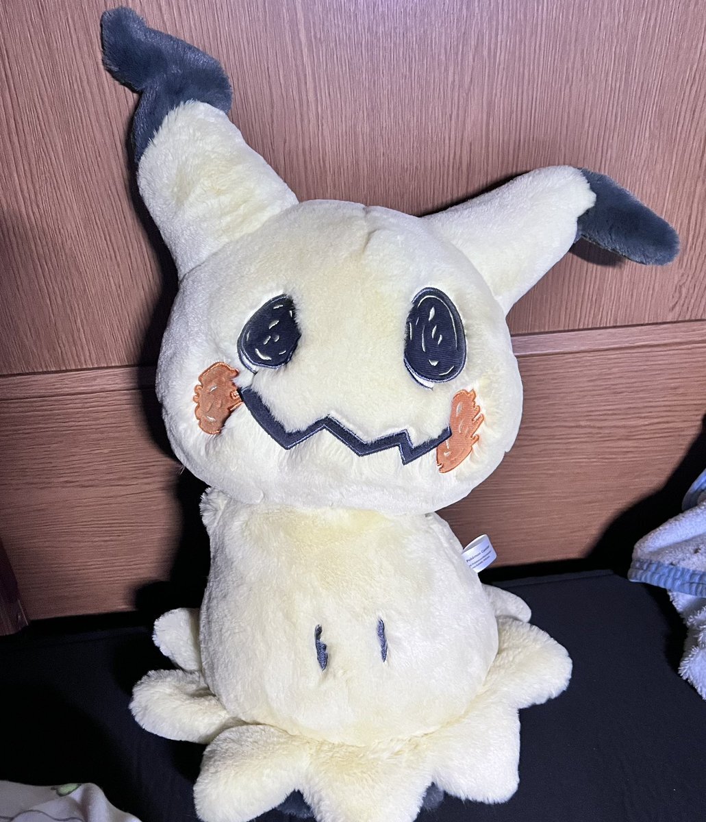 ミミッキュぬい親が買ってくれたんだけどほんとに可愛いし触り心地良すぎだし暖かい サイズが良い、本当はそのまんまミミッキュとめっちゃ悩んだんだけど最初にこの子と目があってしまって... pic.x.com/3h2Y3Ci48S