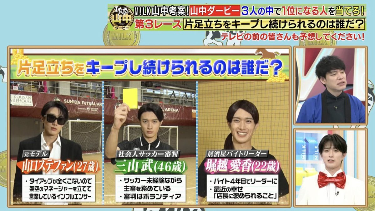 M!LKシーズンレギュラー TBS「ラヴィット!」 ご視聴いただきありがとうございました! 本日は #山中ダービー を地上波でやらせていただきました!まさかの地上波デビュー。。。 トレンドも大盛り上がりで みなさまたくさん応援していただき ありがとうございました! ▶️元祖山中ダービーはこちら