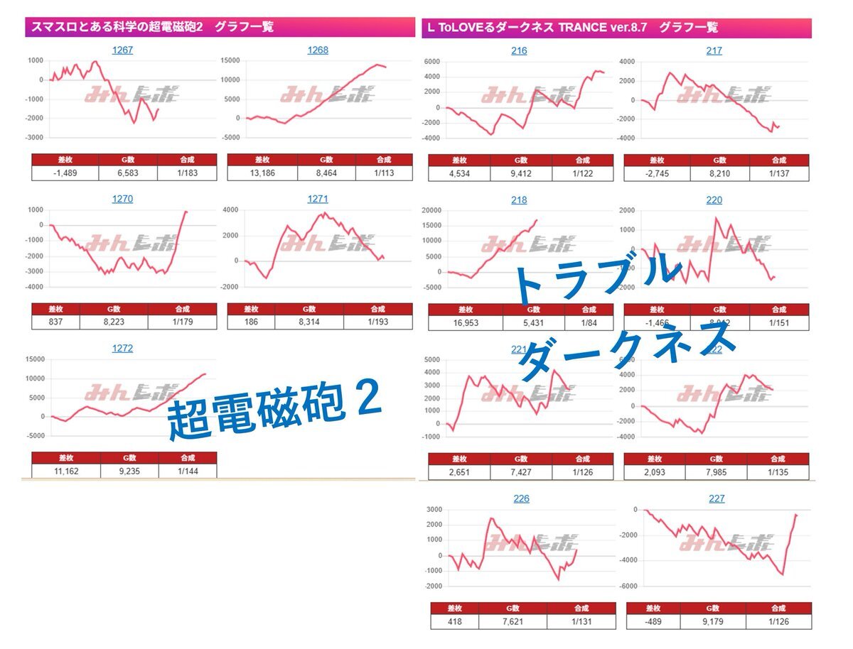 11/17(月) メガコンコルド1177大口41号通り店 スロット差枚レポート 総差枚:+226,081 平均差枚:+411 ☆スマスロとある科学の超電磁砲2 ◎スマスロ モンスターハンターライズ 他多数 min-repo.com/2741007/ 過去の結果一覧 min-repo.com/tag/%e3%83%a1%…