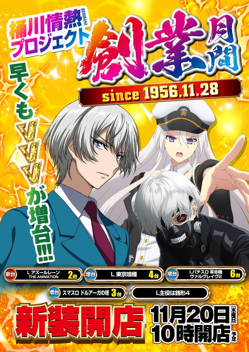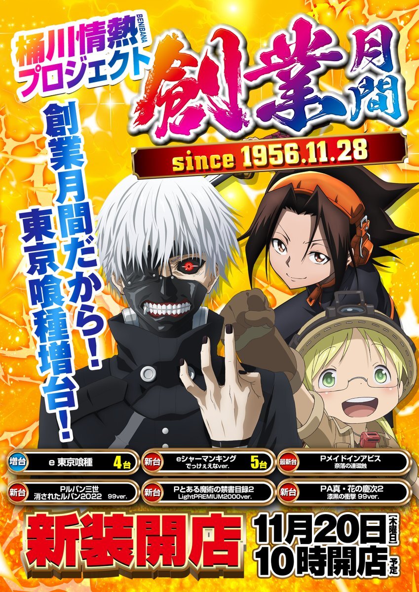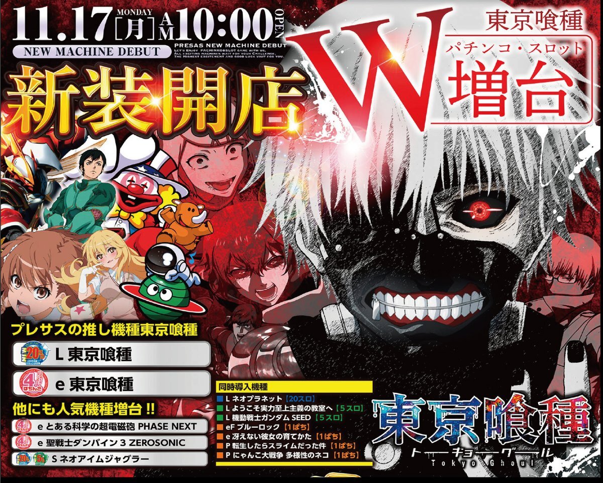 プレサス飯田橋は 明日11月18日(火)も ☀AM10:00 OPEN☀ 🆕🆕🆕🆕🆕🆕🆕 新 装  日 目 🆕🆕🆕🆕🆕🆕🆕 「L東京喰種」増台 「e東京喰種」増台 「 Sネオアイムジャグラー」増台 「とある科学の超電磁砲 PHASE NEXT」増台 「e 聖戦士ダンバイン3 ZEROSONIC」 増台 「Lスマスロネオプラネット」 pic.x.com/XXuZZPVIBh