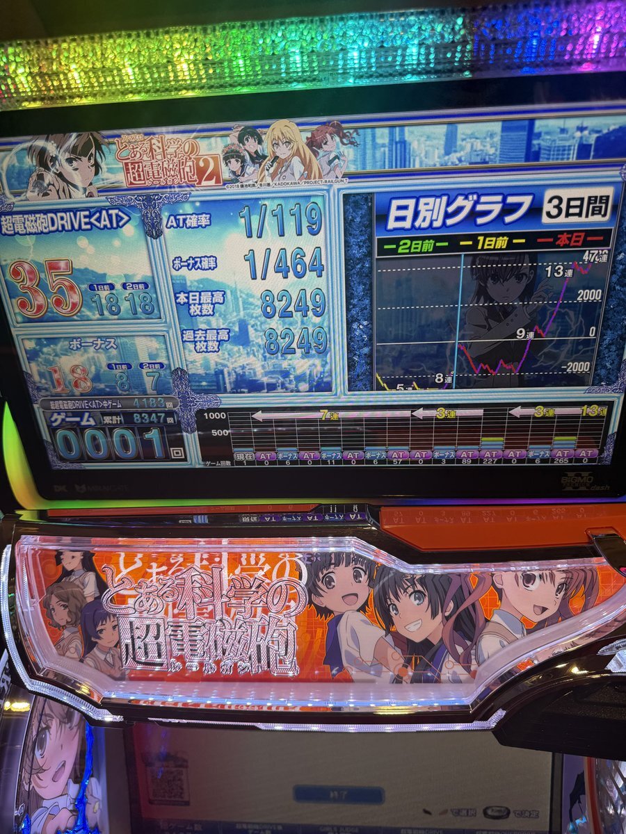 今日はスマスロ とある科学の超電磁砲2 でツモって8000枚‼️ この機種だけで20000枚くらい勝ってるから相性が良いのかも😁 pic.x.com/e3glOYg5gC